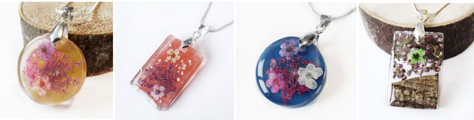 Nos bijoux sont fabriqués entièrement à la main, en fleurs naturelles et résine d’inclusion. Nous sélectionnons les fleurs et les faisons sécher, puis nous les incrustons dans une résine de qualité, que nous gardons transparente ou que nous colorons de bleu, rouge, jaune ou rosé. Les pendentifs sont montés sur des chaînes en argent 925. Vous pouvez aussi opter pour un lien en nylon. Chaque bijou floral est personnalisable à vos envies, sur simple demande par e-mail ?